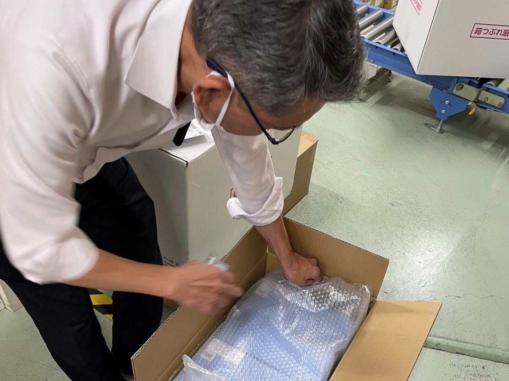 全国のイトーヨーカドーから集められたランドセルは、一度物流センターに集約しました。そこから2,3週間かけて、一つひとつ傷や汚れ、中身に不備がないかを丁寧に検品。また、リクエストに応じて色分けしながら梱包状態を整えていきました。こうして準備を整えたランドセルの第1便をこの7月、ようやくお送りすることができました。